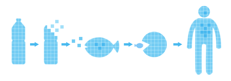 是指粒径很小的塑料颗粒以及纺织纤维。现在在学术界对于微塑料的尺寸还没有普遍的共识,通常认为粒径小于5mm的塑料颗粒为微塑料。这些微塑料颗粒会吸附许多来自工业和农业的有毒化学物资,它们漂浮在海洋的上层,被许多浮游生物或其他生物误食,这些体积较小的生物作为食物然后又进入到更大型的动物体内,而在这些较大型的动物往往是人类经常捕食的鱼类。人们早先丢弃的微塑料早就溶解在鱼虾的血液里,最终回到人们的餐桌上。