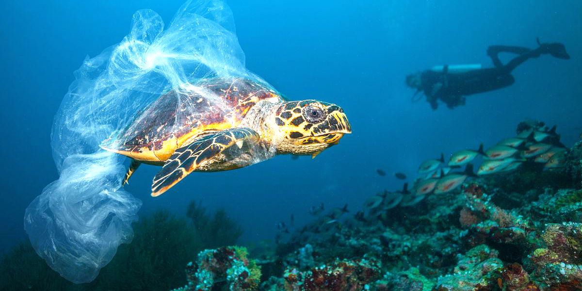 把漂浮的塑料碎片看作食物误食的海龟、鼻腔插入塑料吸管的鱼类、身体缠绕渔网的鲸鱼,无数看不到的海洋生物正在被判处死刑。
